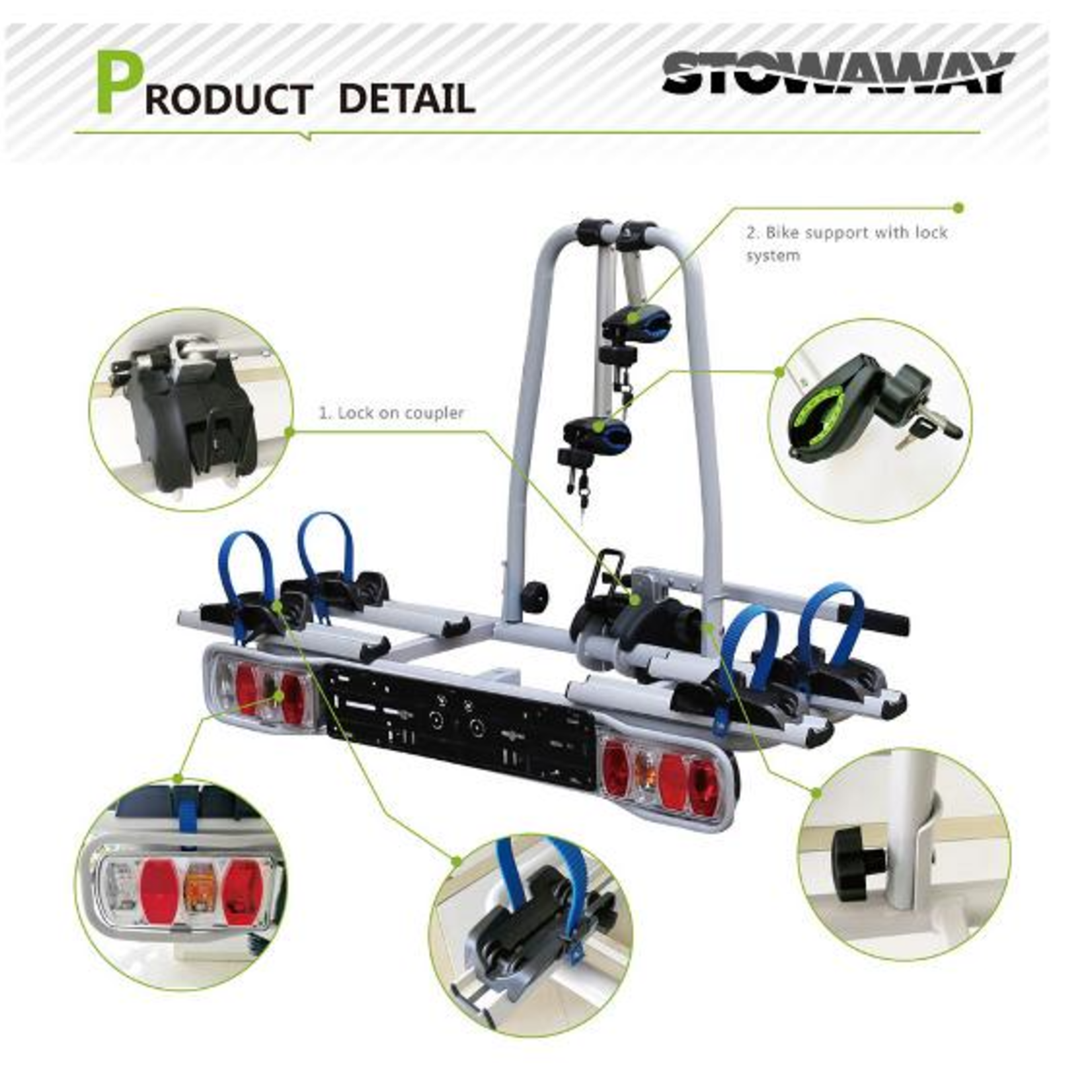 STOWAWAY Bike Carrier Car Rack for E-Bikes - Tow Ball Mount - 2 Bikes